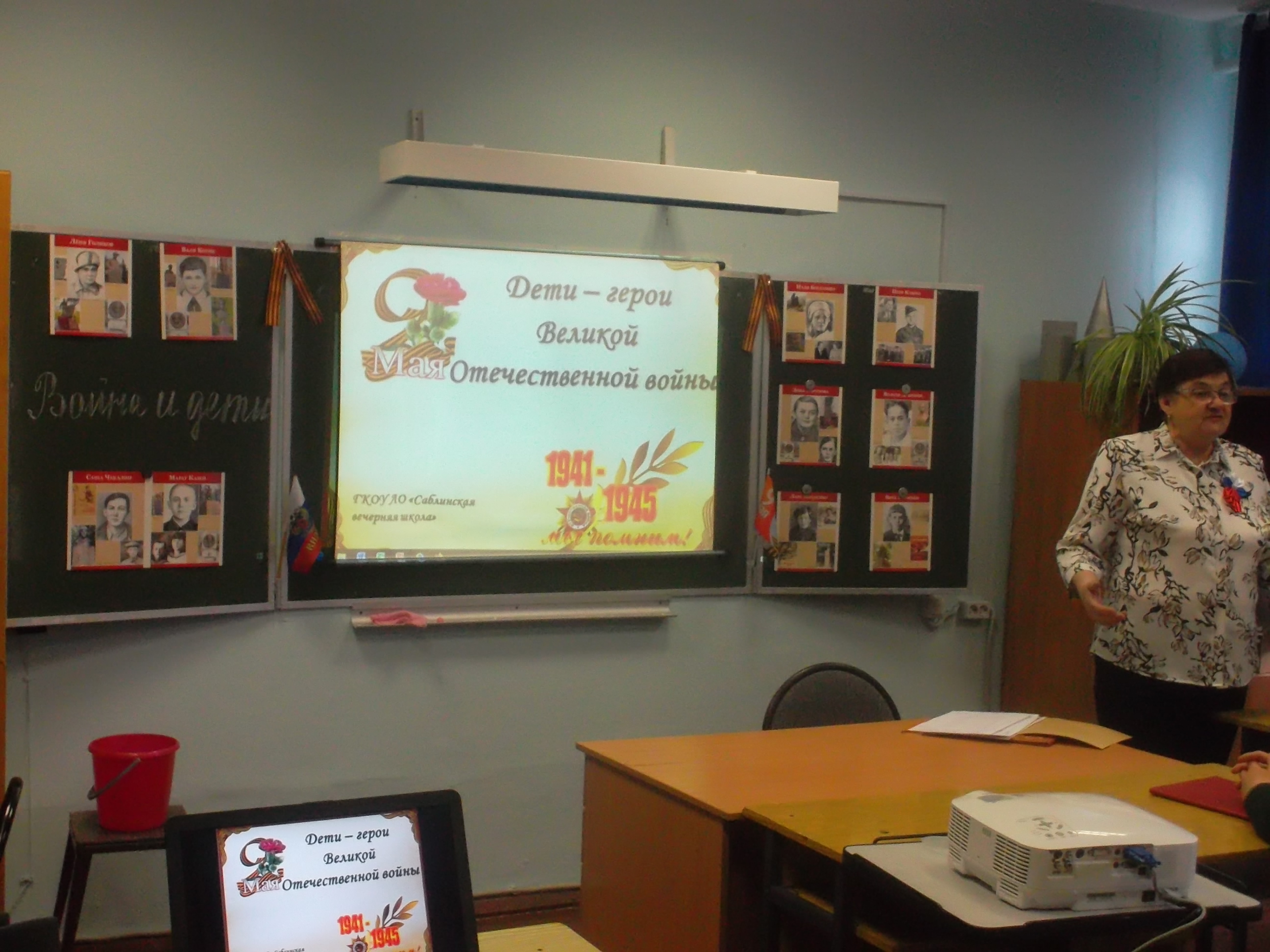 Учитель истории Беседина Галина Александровна рассказала о детях войны, которые любили жизнь, радовались лучам утреннего солнца, запаху полевых цветов… В ходе встречи ученики много узнали о тяжёлых трудовых буднях в тылу, о том, как маленькие дети наравне со взрослыми ковали долгожданную победу. Ученики 10 и 11 классов подготовили сообщения о детях-героях, удостоенных звания Героя Советского Союза, а таких героев было четверо: Валя Котик, Леня Голиков, Марат Казей и Зина Портнова. Никого не оставило равнодушным стихотворение Э. Асадова «Чулочки». В заключение ученики посмотрели фильм «Солдатик» режиссера Виктории Фанасютиной, повествующий о волнующих и героических событиях, произошедших в жизни самого маленького солдата — героя Великой Отечественной Войны, шестилетнего Сережи Алешкова. Он потерял всех своих родных, попал в действующую армию. С шестилетним мальчиком затеяли игру в солдатика, чтобы сохранить ему детство, а он, чтобы соответствовать этому почетному для него званию, стал настоящим защитником Родины.
