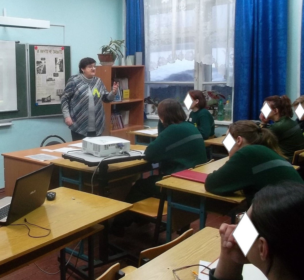 Беседина Галина Александровна, учитель истории, рассказала обучающимся о тяжелых испытаниях, выпавших на долю жителей осажденного закрытого города Ленинграда: о голоде и холоде, о детях и женщинах, работавших наравне с мужчинами на заводах, о защите и обороне Ленинграда советскими солдатами. Особенными чувствами ученики прониклись к судьбе маленькой девочки Тани Савичевой, которая во время блокады вела дневник, содержащий девять страшных строк: каждая строка посвящена смерти одного из близких.