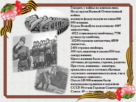 В школе прошел цикл мероприятий, приуроченных к этому празднику: конкурс плакатов, стихов, песен. В заключение 8 мая состоялась литературно–историческая гостиная для обучающихся «У войны не женское лицо».